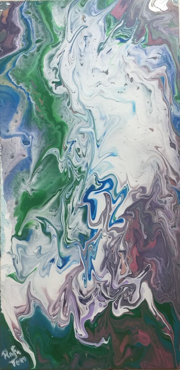 Acrylic on canvas fluid art, modern abstract. Showing two white horses fighting and bucking